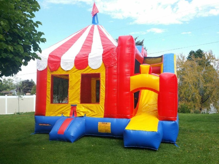 - OCCUPANCY: A maximum of 5-6 kids of equal size at one time for bounce houses, and 1 person at a time for slides is what most inflatable manufacturers recommend.
